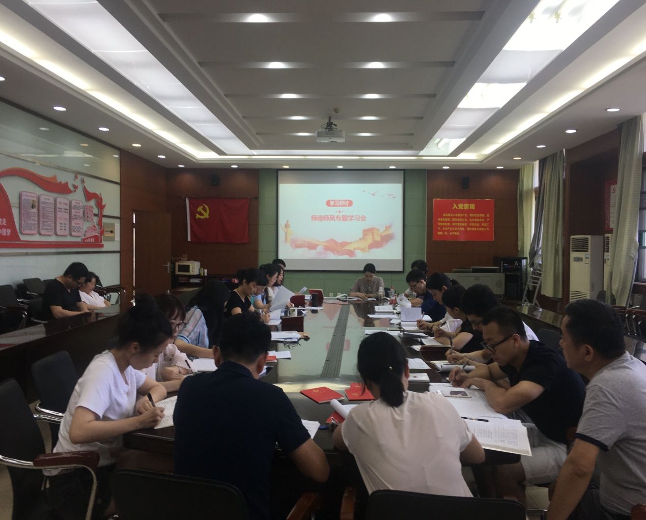 在师德师风专题学习会中,陈楠同志带领全体行政教工学习了习近平总书记关于师德师风重要论述,王延同志领学了《教育部关于建立健全高校师德建设长效机制的意见》,董丽华同志领学了《高等学校教师职业道德规范》、林琳同志领学了《湖北省教育厅关于较强和改进高等学校教师师德师风建设的意见》,杭慧喆同志领学了《湖北高校教师“十倡导十禁止”师德行为规范》,孟曰同志领学了《中南财经政法大学师德规范和评价方法》,曹运波同志领学了《中南财经政法大学关于健全师德建设长效机制的实施办法》。院党委肖翠祥书记强调全体教工要认清形势,提高认识,不断提高政治素养和师德修养,提高业务能力水平,做好自己的本职工作,把立德树人落到细处,落到实处,争做“四有”好教师。
