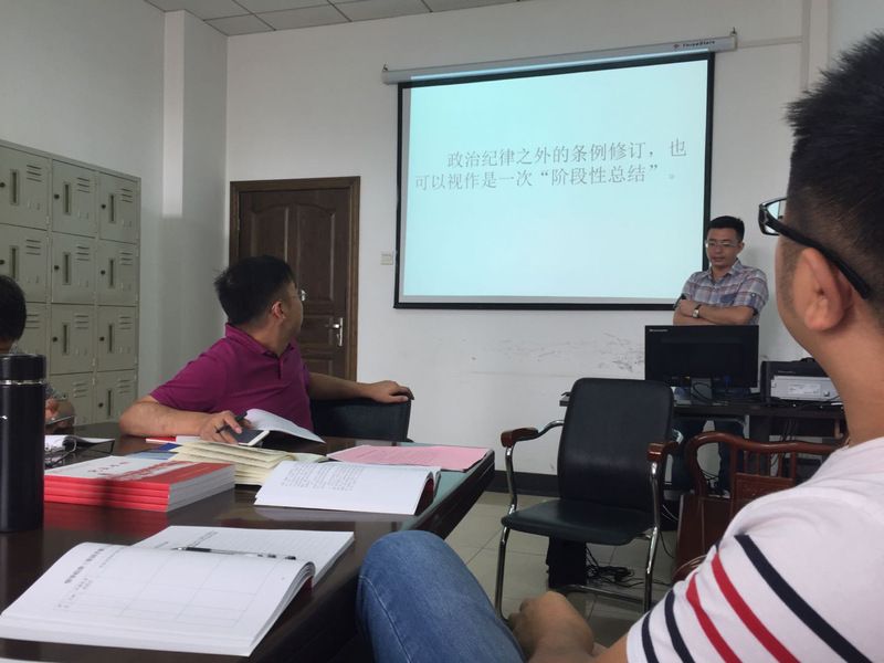 在接下来的学习中,李四海同志首先带领大家学习了《中国共产党纪律处分条例》,通过对《条例》修改前后的对比学习,大家更清楚地了解如何规范自身行为,做一个合格的共产党员。随后,李四海同志带领大家学习了《关于高等学校加快“双一流”建设的指导意见》等重要文件。通过学习 “双一流”建设的总体要求和具体要求,大家明确了“双一流”建设的意义和战略规划,并在如何培养社会主义建设者和接班人、探索一流大学建设之路、打造一流学科高峰、加强协同,形成“双一流”建设合力等方面结合自身的经历和感受提出了很多意见和建议。