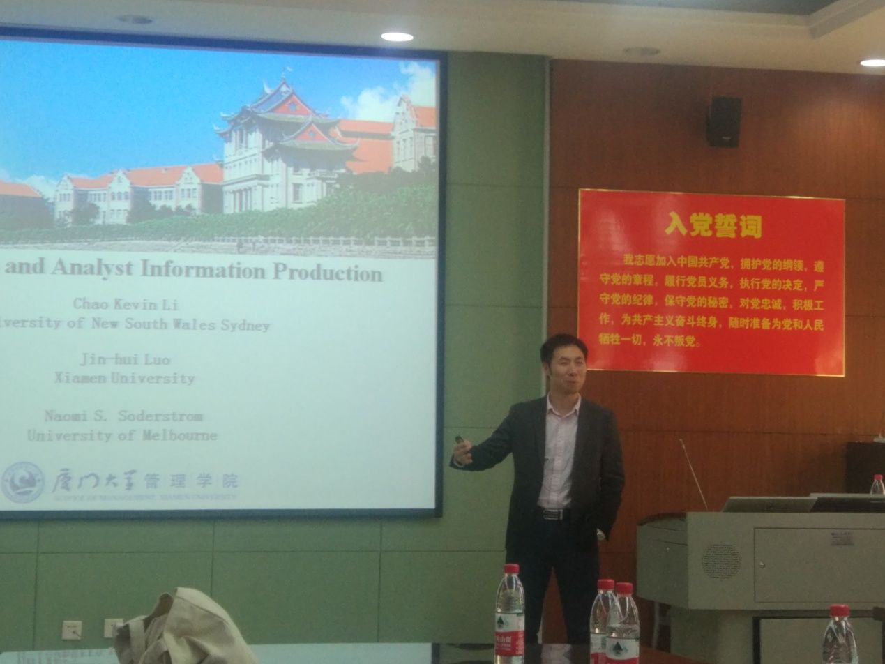 (通讯员 王孝之 邓伟)11月23日和29日,会计学院第57期和58期学术午餐会在文泉楼南401会议室顺利举行。本次午餐会邀请到了厦门大学管理学院罗进辉副教授和华中科技大学经济学院钱雪松教授带来精彩的报告,讲座由邓伟副教授主持,两场讲座会计学院共一百余名师生参加,大家认真听取报告,积极进行讨论,现场气氛十分热烈。