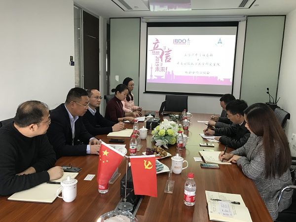 2018年11月27日上午,会计学院(会硕中心)副院长王昌锐副教授、专业硕士导师组陈丽红教授、季华副教授以及向传殿老师前往立信会计师事务所华中管理总部洽谈专业硕士培养合作事宜。立信会计师事务所(特殊普通合伙人)华中管理总部高级合作人祁涛,合作人崔松、合伙人严贤波以及人事部经理王倩参与了座谈。