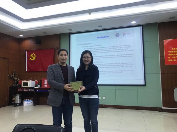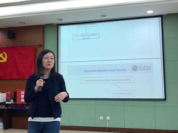 朱振梅副教授报告的主题是金融监管不确定性与银行收益错误定价。朱振梅副教授首先指出,近年来研究者特别注重宏观经济政策对企业以及投资者等微观主体行为影响的研究,金融监管作为一种宏观监管政策可能对银行产生重要的影响,同时商业银行作为一类特殊的企业在国民经济中发挥着举足轻重的作用。与经济政策不确定性、货币政策不确定性等不确定因素相比,金融监管不确定性可能会对银行收益的错误定价产生更为复杂的影响。金融监管不确定性一方面可能会直接增加投资者的意见分歧,另一方面在存在监管政策不确定性的环境中,投资者可能会做出理性的选择,增加对信息的关注从而减少市场反应的延时。朱振梅副教授通过实证研究表明,金融监管的不确定性会增加盈余公告后的价格漂移并增大盈余预测误差,这一效应对于核心资本较低以及不良贷款上升较快的银行尤为明显。因此,监管部门在制定监管政策时,应考虑到政策对于投资者的不确定性,尽量降低监管政策的不确定性以防止对市场有效性产生负面影响。