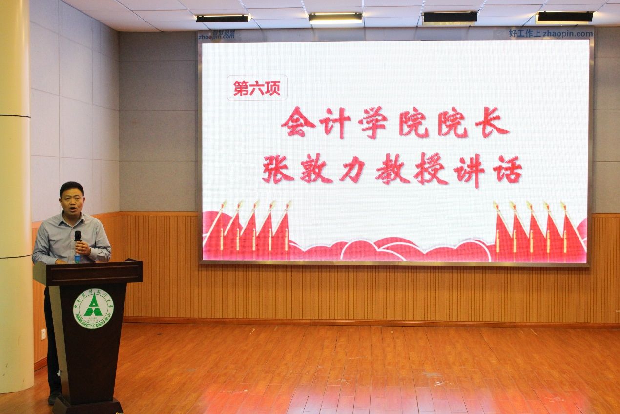 大会第六项,会计学院院长张敦力教授讲话。张院长对会院学子提出了四点要求:胸怀信念、志存高远;;努力奋斗、增强才干;;砥砺前行、努力尽责;勇于创新,开拓进取。