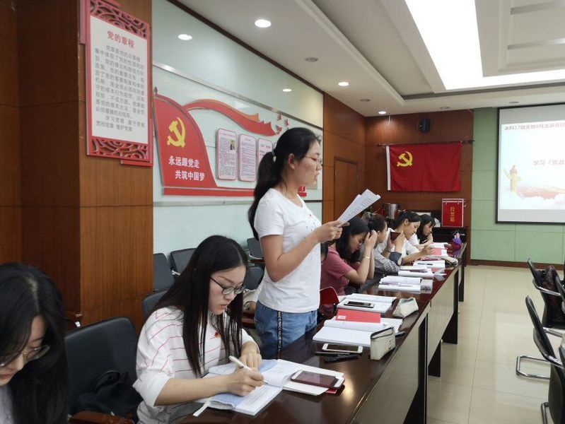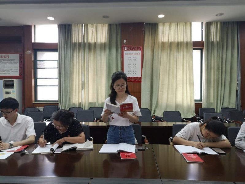 会议伊始,由陈俊华同志带领支部成员重温入党誓词。随后,由陈蕙章同志为支部全体成员诵读《中国共产党章程》第七章——《党的纪律》。之后,支部全体成员现场交纳六月份的党费。