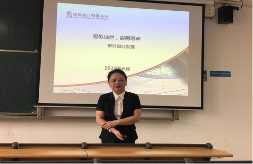2019年6月13日,刘湘艳女士(瑞华会计师事务所专职合伙人、证券资格注册会计师、全国会计领军人才班学员、深圳先进会计工作者、广东省注册会计师行业领军人才班学员等)应邀来访会计学院,并在文添楼105教室举办了精彩绝伦的学术讲座,主题为“看似灿烂,实则艰辛--审计职业发展”。刘湘艳女士结合了自身数十年的审计行业从业经验,分享了多个真实案例,将审计理论与审计实务完美的结合,深入浅出的给我们讲解了审计职业的前世今生及未来的发展趋势。本次讲座由导师组组长陈丽红教授主持,讲座全程弥漫着浓厚的学术氛围,刘湘艳女士演讲声情并茂,同学们也都正襟危坐,认真聆听,并积极地与刘湘艳女士展开互动,交流学习。