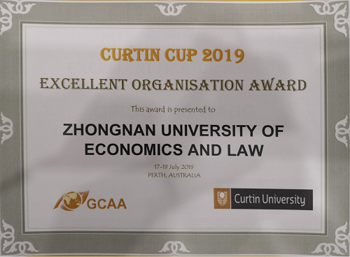 中南财经政法大学会计学院名为ZUEL.PRO的代表队在王清刚教授的带领下,应邀参加了此次竞赛,队员全部是来自国会2017班的同学,由王欣茹、芦竣文、姚池、叶琪、舒瑞锦五位同学组成。经过紧张的初赛、复赛和决赛,ZUEL.PRO代表队表现突出,荣获第二名(奖金:澳币五千元),第一名是北京国家会计学院代表队。
