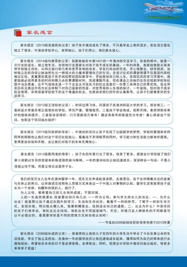 (1)经济条件:必须能够承担读中澳班期间的所有费用;