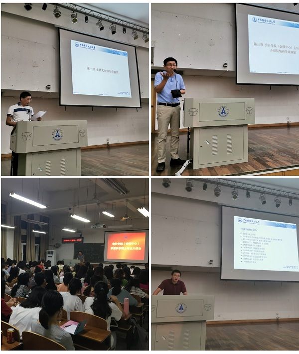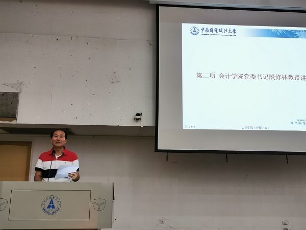 2019年9月2日晚,会计学院(会硕中心)在文澜楼111顺利举行2019级硕士研究生入学教育暨专业介绍会。会计学院党委书记殷修林教授、会硕中心主任郭飞教授、学硕导师组组长李四海副教授,专硕导师组组长宋丽梦副教授、副组长季华副教授以及研究生办公室人员参加会议。会议由副院长王昌锐教授主持。
