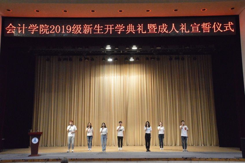 9月12日下午2时,会计学院2019级新生开学典礼暨成人礼宣誓仪式于首义会堂举行。会计学院院长张敦力、院党委书记殷修林、党委副书记王延、副院长王华、会计学系主任冉明东、财务管理系主任何威风、财务管理系副主任黄洁莉以及学办团委的老师们出席本次活动。活动由院党委王延副书记主持。