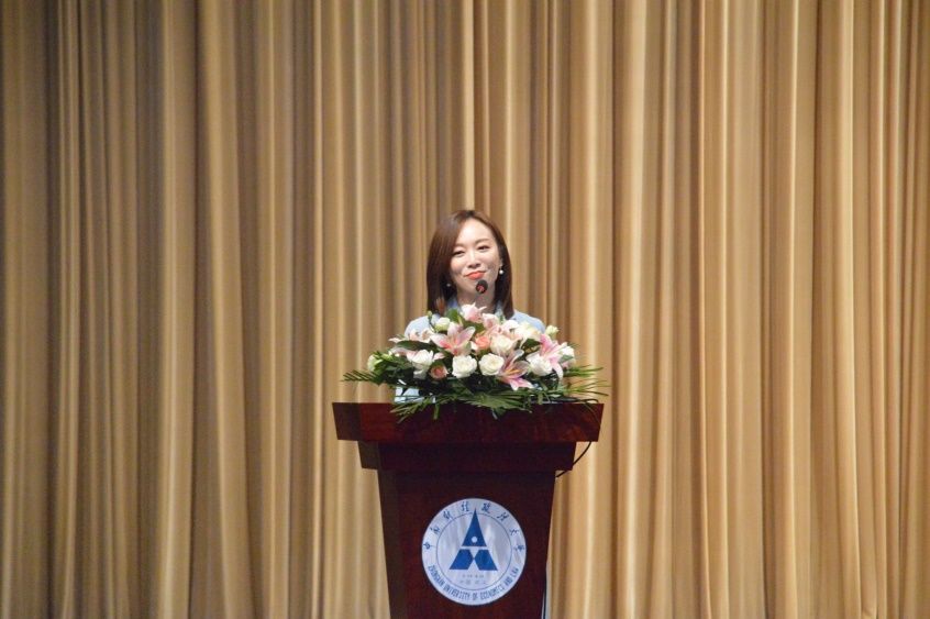 活动第三项,会计学院教师代表黄洁莉副教授发言。黄老师结合自身成长经历从学会做事、学会做人、学会做自己三个方面进行了分享。她认为进入大学后,同学们既要钻研专业也要钻研专业之外的事情,要学会与同学和老师相处的方法,要学着自己做决定,做好人生规划。