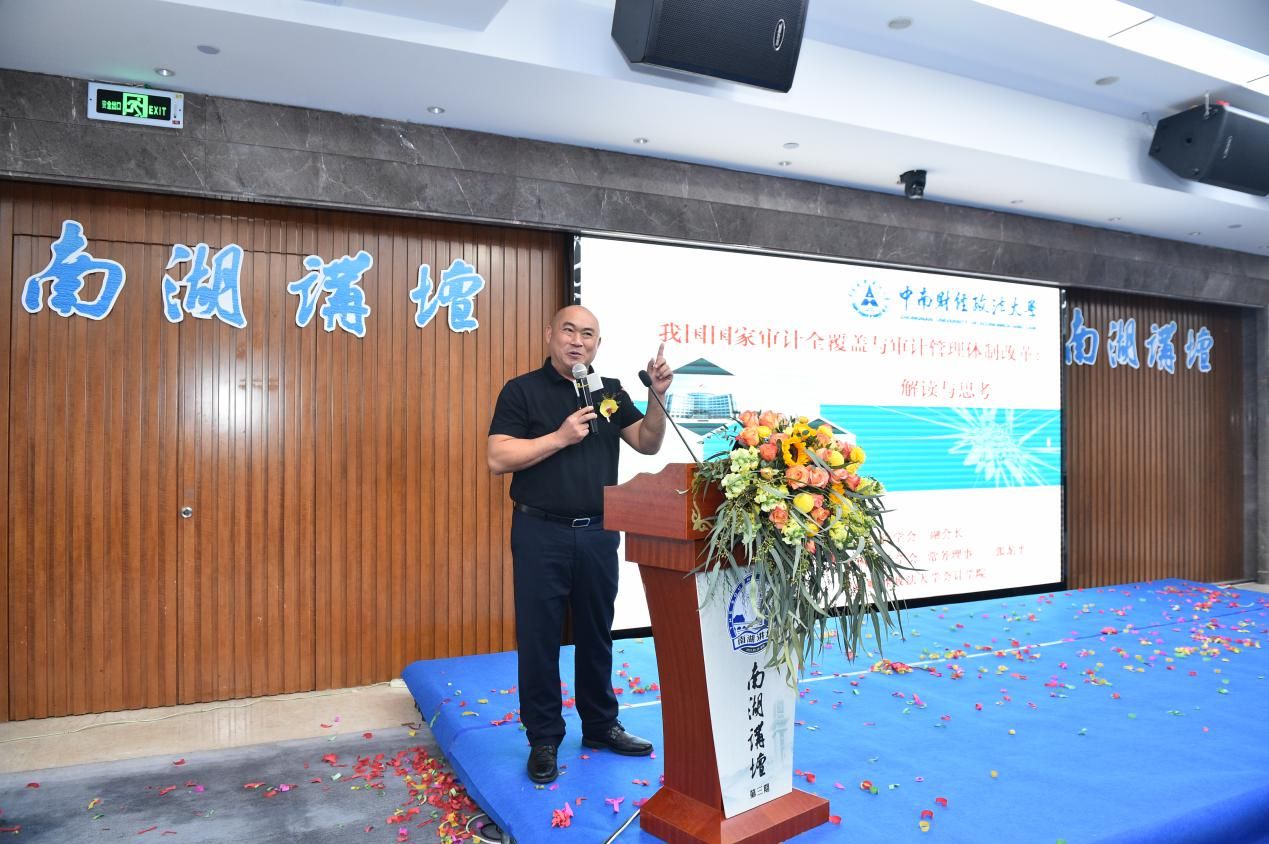 第三届南湖讲坛于9月28日下午隆重举行,由我校深圳校友会会计分会承办、会计学院协办。中南财经政法大学原副校长王寿安教授,会计学院原院长、湖北省人文社科重点研究基地——注册会计师行业发展研究中心主任、博士生导师张龙平教授,会计学院院长、博士生导师张敦力教授,会计学院学术委员会主席、博士生导师张志宏教授,会计学院原副院长、博士生导师汤湘希教授,会硕中心原副主任、硕士生导师高文进副教授,会计学院博士生导师刘圻教授,会计学院党委委员、党政办公室主任徐会超副研究员,会计学院培训中心秘书王晓静老师,中南财经政法大学深圳校友会执行会长、会计分会会长刘仁满老师,中南财经政法大学深圳校友会秘书长陈旭明校友,深圳注协培训部主任李一博先生,深圳注协姚静仪女士,深圳会计学会会长成放晴先生,东北财经大学深圳校友会副会长张亮先生,东北财经大学会计学院深圳校友会副会长徐云辉先生,东北财经大学会计学院深圳校友会秘书长陈蔯先生,西南财经大学深圳校友会张冉女士出席会议。来自深圳校友会理事会的成员以及深圳各界的杰出校友、教师和在深圳工作的年轻的校友们,共300余人参加了会议。会议由中南财经政法大学2013级影像专业的兰强和2010级国际商务专业的姜凌逸两位校友主持。