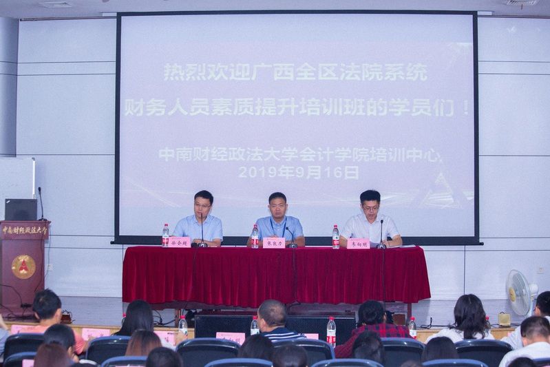 培训班开班仪式于9月16日上午在我校图书馆报告厅举行,中南财经政法大学会计学院院长张敦力教授、广西壮族自治区高级人民法院行装处韦向明处长等出席了开班仪式。开班仪式由中南财经政法大学会计学院党委委员、党政办公室主任徐会超副研究员主持。