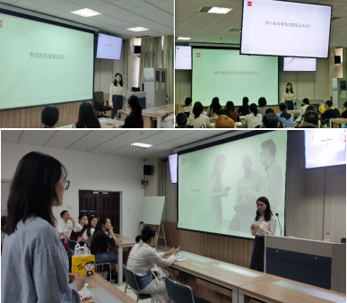 在活动接近尾声之际,张诗莹校友悉心解答大家提出的实习与职业选择方面的疑问,并鼓励大家既要善于发展自身,也要努力寻找机会,在实习中用心感受、成长,为将来增加更多选择的权力,并留下了诸如“先在乙方吃苦,后到甲方享福”的趣味话语,令在场的同学们受益匪浅。