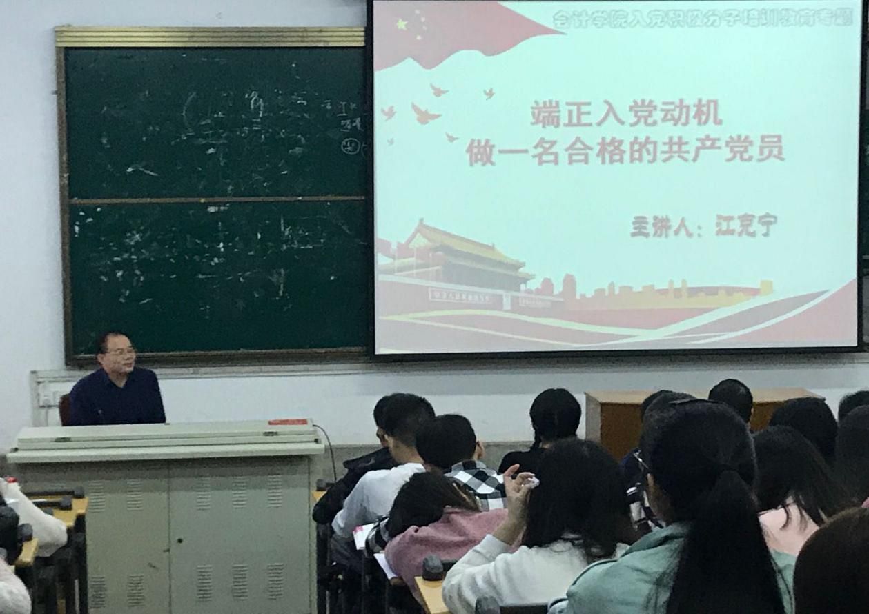 为认真贯彻落实《中国共产党发展党员工作细则》,进一步提高入党积极分子的思想认识和理论水平,11月16日下午,会计学院分党校第23期学生入党积极分子培训班在电教103教室如期开班。参加此次培训班的学生包括本科生、硕士生和博士生共计179人。会计学院党委书记殷修林教授出席开班典礼并发表讲话。