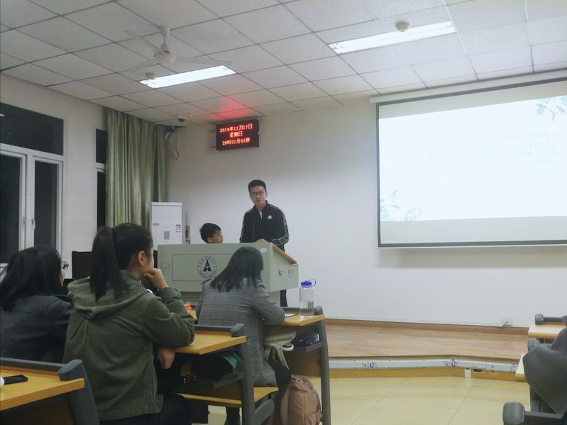 杨博师兄在“社会实践”的交流中,向同学们介绍了社会实践项目的相关情况。师兄向同学们展示了社会实践表,并具体介绍了各种形式的社会实践项目。作为活动亲历者,他详细介绍了社会实践的前期准备以及社会实践项目的基本流程,为同学们分享了选题小窍门。师兄对于构思选题、团队组建、成果提升和实地调研四个方面内容的着重强调,不仅加深了同学们对社会实践的了解,也大大激发了同学们的参与热情。