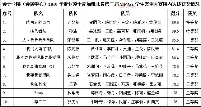 最后,由评委老师们对今天获奖团队进行了颁奖,获得特等奖和一等奖的三支团队将代表学院(中心)参加湖北省第三届MPAcc学生案例大赛。