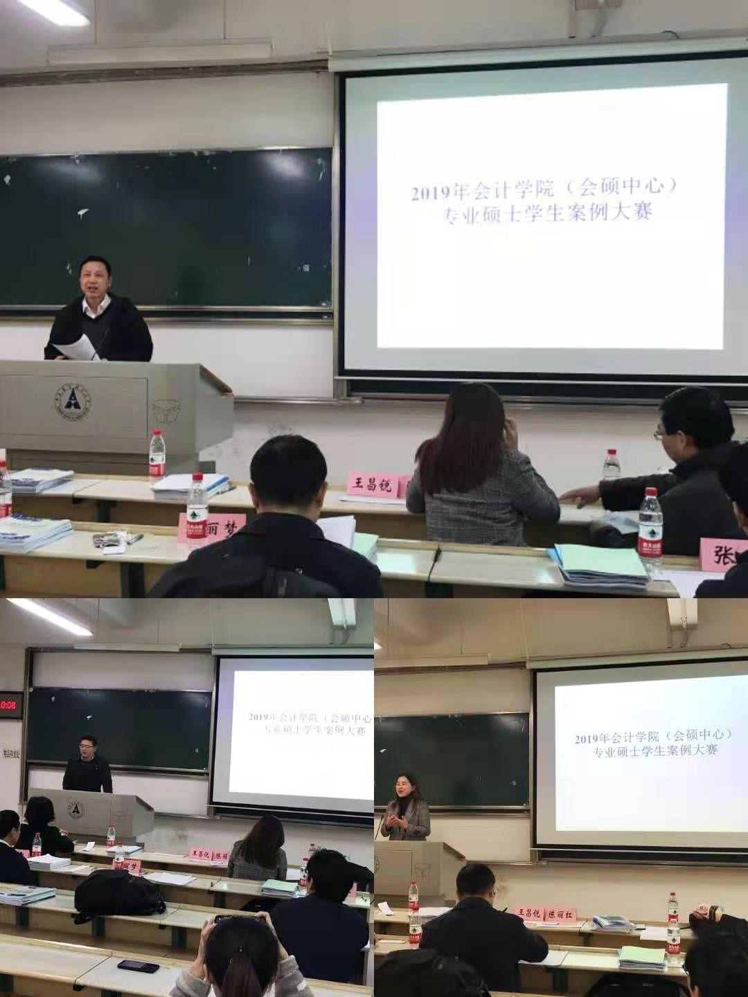 (撰稿:胡晗晓 审核:向传殿)2019年11月21日上午8:30,中南财经政法大学会计学院(会硕中心)2019年专业硕士参加湖北省第三届MPAcc学生案例大赛院内选拔赛在文添楼102教室举行。会计学院副院长王昌锐教授、专业硕士导师组长宋丽梦副教授和陈丽红教授,以及高文进副教授、康洪艳副教授、肖浩副教授和张胜副教授等作为评审专家小组成员参加了本次选拔赛。比赛由学院(中心)分管专业硕士的副院长王昌锐教授主持。