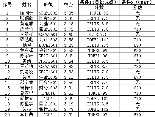 经个人申报,学院整理、汇总,现将2020年美国伊利诺大学香槟分校MSA硕士项目资格审查情况公告如下,请各位同学认真核对是否信息有误,并请各位资格审查通过的同学于周一(12月9日)13:00 在文泉楼南306参加相关考核及面试。 若有疑问,请拨打电话:88386008!