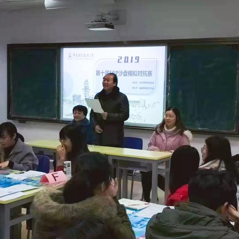 11月30日,由会计学院研究生会创新创业实践部主办、金融学院外联部协办的第十届ERP沙盘模拟对抗赛在文澴楼225顺利收官。本次活动分为赛前培训、初试选拔和现场决赛三个阶段,会计学院党委殷修林书记为比赛致辞,张慧德副教授为获奖团队颁奖。