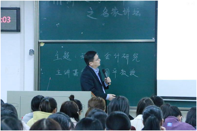 2019年12月3日晚7:00,由研究生院、党委研究生工作部和校研究生会主办,会计学院研究生会承办的第171期“文澜大讲堂”之名家讲坛在文添楼105举行。本次讲座由我院博士生导师唐国平教授主讲,主题为当今热门话题——环境会计研究。对于本次讲座,同学们热情非常高涨,现场座无虚席,约有一百五十多名同学参与。