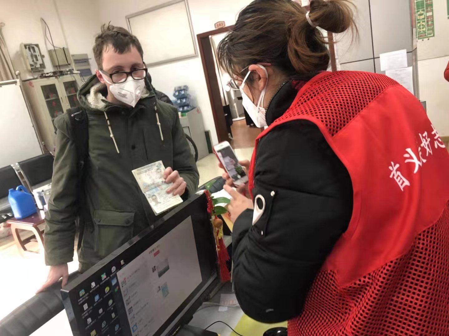 刘晓航教授从儿子处得知此事后,迅速联系我校首义校区街道办,并协助阿密特完成了相关身份验证手续,社区工作人员十分重视,报上级批准后,社区派遣车辆将阿密特送往机场。本以为一切顺利,但是他们被拦在了机场高速入口处,要求提供英国驻华大使馆签发的文书和具体航班信息,但是由于时差原因,英国驻华大使馆此时并未上班,还需等待。