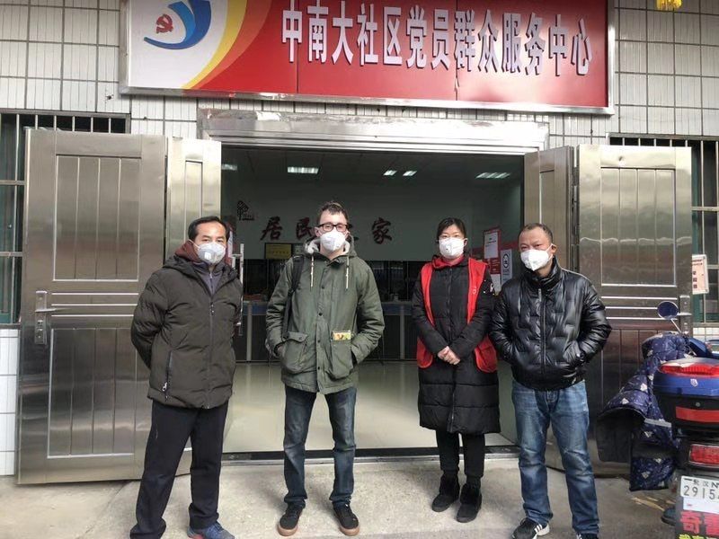武汉新型冠状病毒肺炎疫情发生以来,学院退休教授刘晓航和她的儿子、我校校友关振宁一直关心着首义校区周围的邻居朋友们,在他们需要的时候随时提供帮助。1月29日下午,关振宁接到武昌实验小学特聘外籍教师汤姆·约瑟夫·阿密特发来的微信,阿密特家住首义校区附近的银杏公寓,向其求助是否能够帮其联系上车辆送他和另一名朋友一起去天河机场,他看到英国政府发布的撤侨计划,殷切希望能够搭上飞机回国。由于武汉公交、地铁等暂停营运,机场、火车站暂时关闭,机动车禁行,阿密特内心非常焦虑和无助。