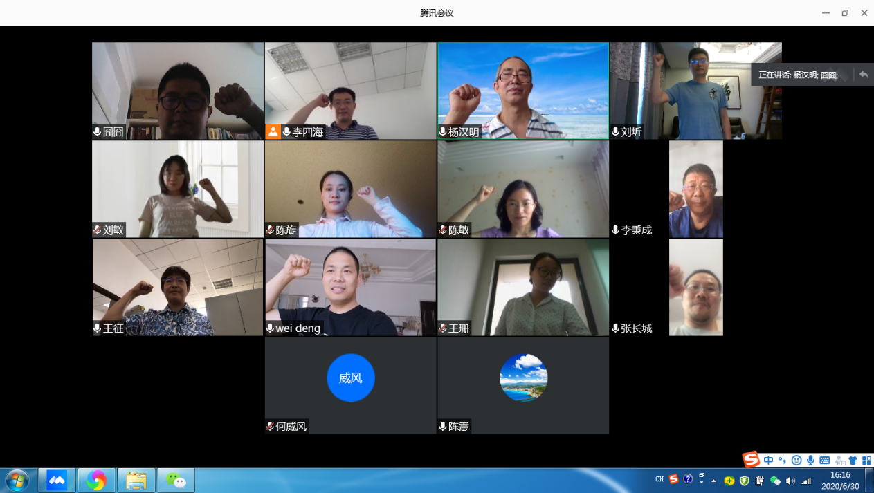 尽管活动的形式变了,但是各位党员对于活动的认真与热情没有丝毫改变。活动开始,党员们在李四海书记带领下进行了“云”宣誓,学习《中国共产党章程》第三章,并缴纳2020年6月的党费。