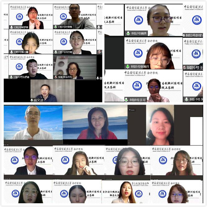 9月16日晚19点,会计学院2019年大学生创新创业训练计划项目结项答辩会在线上如期进行。答辩会邀请了武汉理工大学管理学院陈晓芳院长、中南民族大学管理学院翟华云副院长、武汉科技大学邱玉莲副院长、《会计之友》笑雪总编、《财会月刊》张瑾副总编、《统计与决策》编辑部余洋副编审和我校杨汉明教授、孙贤林教授、高文进教授等多位专家组成评审团。