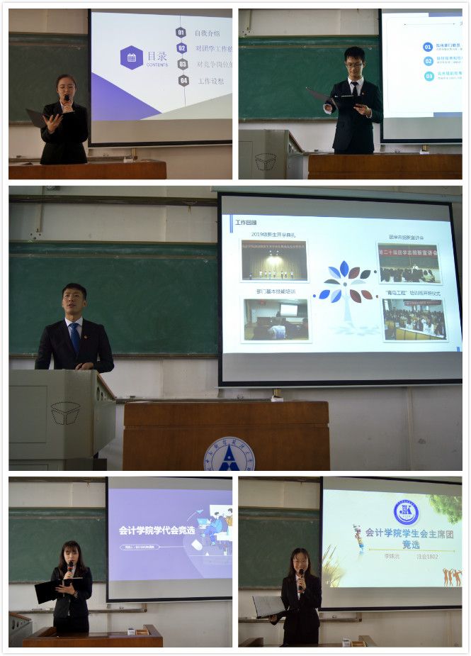 大会进入第九项,候选人进行竞选演讲,学生代表随后投票选举。在候选人激情洋溢、热情真挚的演讲过后,各年级学生代表有序领取选票,并进行了民主投票表决。最终,大会监票人公布了选举结果并宣读《中南财经政法大学会计学院第二十一届学生会主席团名单》,至此,大会圆满结束。