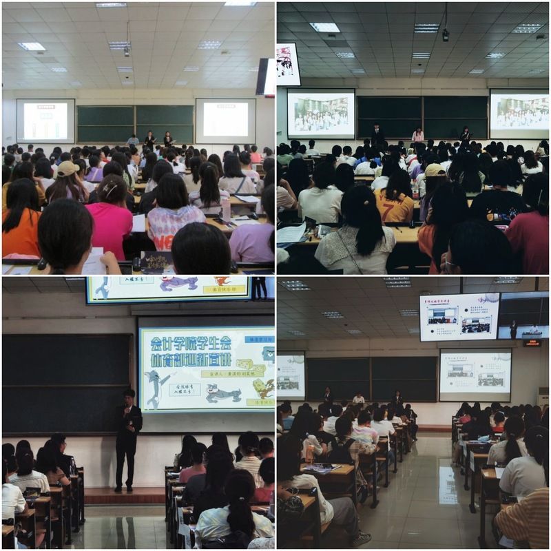 本次宣讲会由会计学院团委副书记万富宝主持。宣讲开始,由会计学院学生会执行主席吴文豪发言,他首先向新同学介绍了会计学院团学志的基本情况及各部门的职能分工,并指出在大学中能力培养与课业学习应是相辅相成的。接着,他也着重强调了在团学志工作中,能力固然重要,但对待工作的态度才是起决定性作用的关键力量,最后吴文豪师兄对参加本次宣讲会的同学们表示了由衷的感谢与祝福。