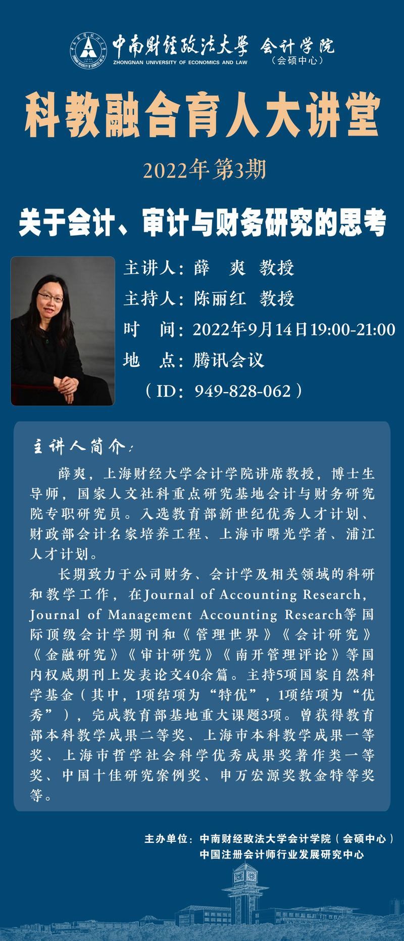 本次我们诚挚邀请上海财经大学会计学院薛爽教授作为主讲嘉宾,为我们带来第3期科教融合育人大讲堂。