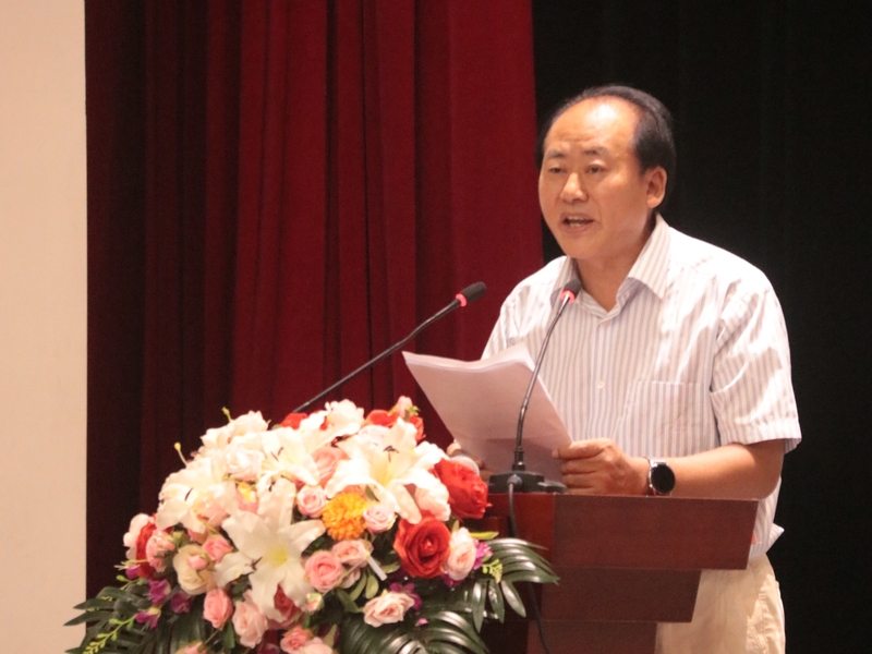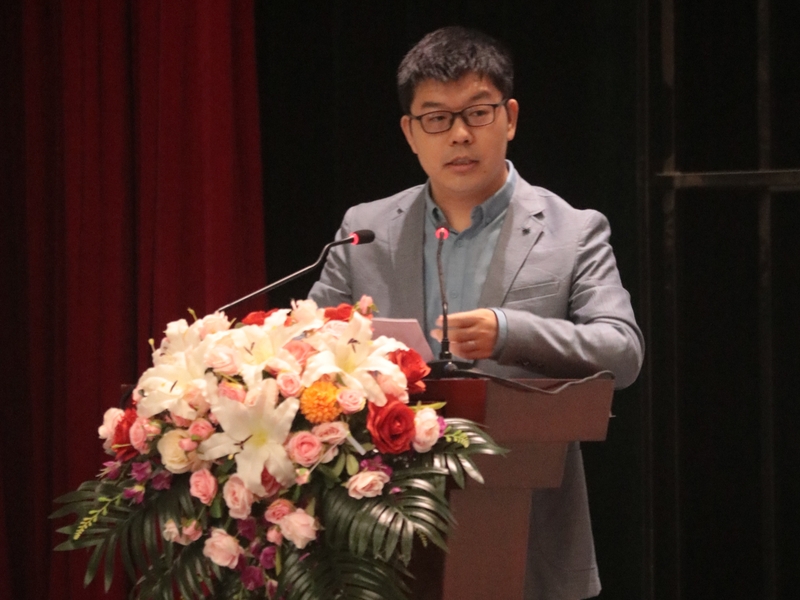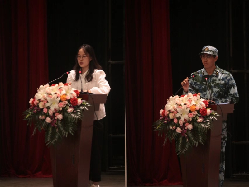 大会第三项,教师代表杨国超教授发言。杨老师结合自身学习工作经历,鼓励同学们一是要尝试多元视角看待问题,培养全面看待问题的能力;二是要深入思考,不做“键盘侠”,学会探索问题本质;三是要正确认识百年未有之大变局,勤读善思,爱学校、爱祖国。