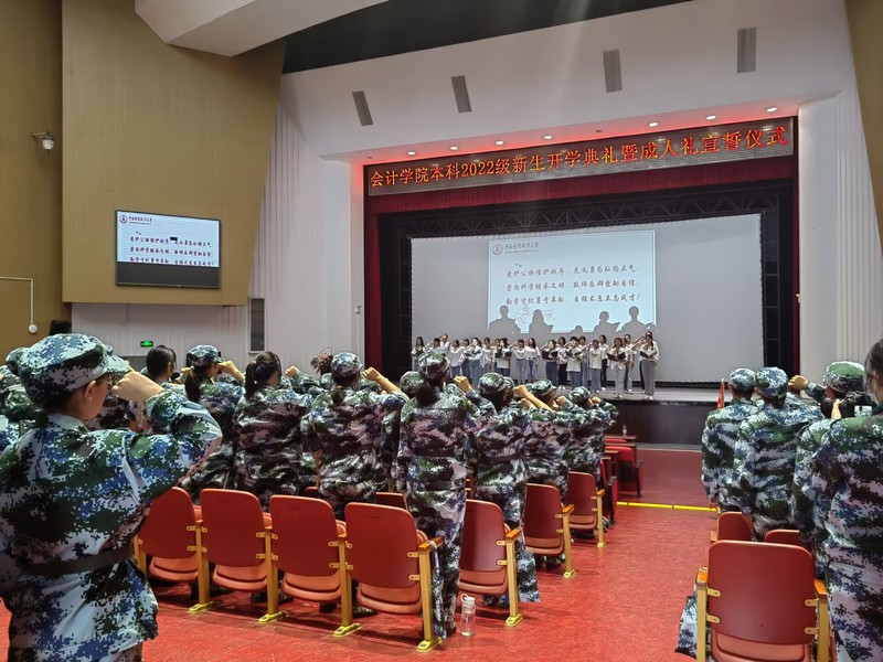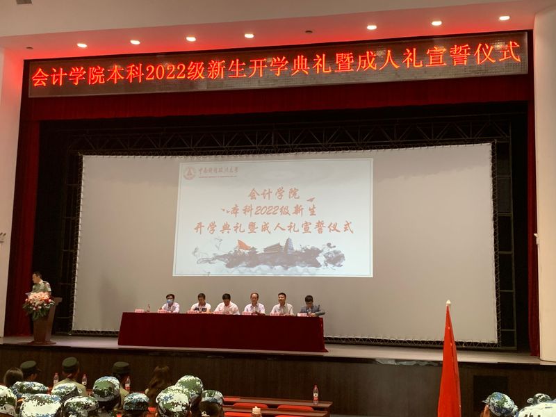 9月22日上午10时,会计学院2022级本科新生开学典礼暨成人礼宣誓仪式于首义会堂举行。会计学院院长张敦力教授,党委书记殷修林教授,会硕中心主任兼副院长王昌锐教授,党委副书记、纪委书记兼行政副院长徐会超副教授,副院长李四海教授,教师代表杨国超教授,学办主任孟曰,团委书记陈俊华,本科22级辅导员黎玥,以及军训助理们参加了本次活动。活动由会计学院党委副书记胡桂锬主持。