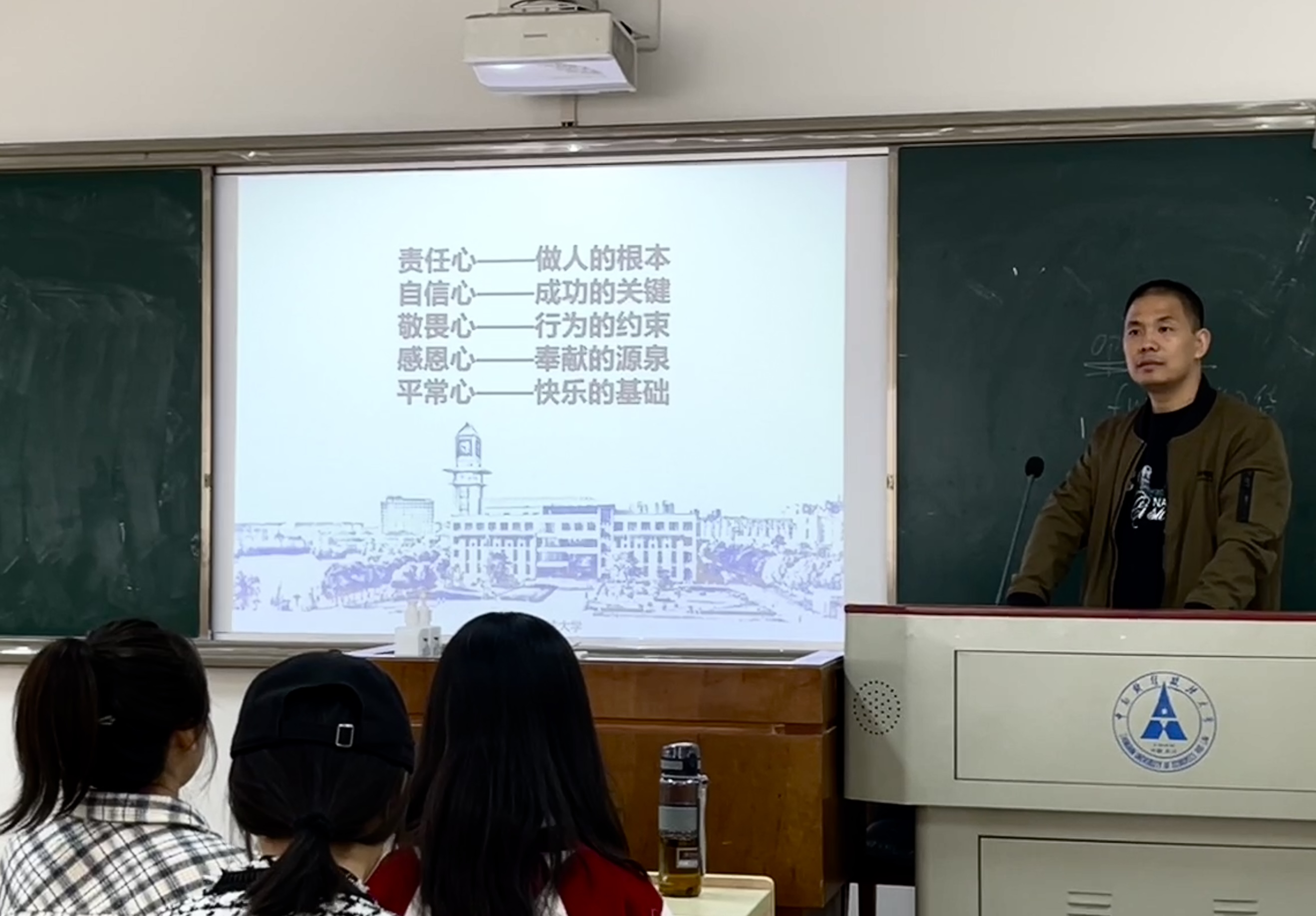 邓老师首先向同学们指出了大学生活作为人生奋斗新阶段的关键性,告诫同学们抛弃幻想、调整状态、摆正心态、脚踏实地,呼吁大家坚定理想信念、认真学习,努力向往届优秀毕业生看齐,寻找榜样的坚强力量,珍惜当下时光,畅想美好未来!同时,邓老师鼓励同学们积极参加科研、竞赛、体育等课外活动,提高综合素质,绽放青春活力与风采!邓老师还向同学们强调了沟通能力、待人接物、遵守承诺等良好生活品质的重要性,并耐心回答了同学们在学习和生活上的疑问,引导同学们以责任心浇灌花田,以平常心静待花开,以感恩心馈赠花香。