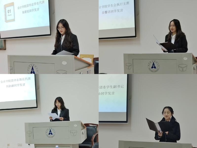 随后,会计学院2022级本科生辅导员黎玥老师讲话。她代表会计学院团委向团学志学生干部提出三点要求:第一,要坚决抛弃“官本位”思想,做好本职工作;第二,要坚持全面发展,学习和工作两手抓;第三,要抓紧一切机会锻炼自己,积极主动完成工作。她号召大家要正视学生干部身份,担当责任和使命,继承团学志宝贵传统,打造具有会院特色的团学志工作平台。