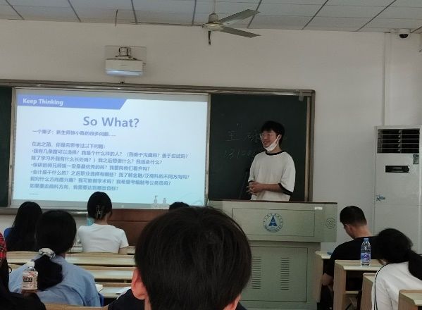 第三位则是由本班班级助理邵济源师兄进行经验分享。邵同学曾是我院2018级基地班同学,目前继续攻读我院学硕研究生。根据学校最新培养计划与选课制度,邵同学对我院课程结构和学分制度进行了仔细解读,特别是涉及到与保研相关的各科成绩具体事项和要求进行了强调,并对不同学期的课程安排提出了自己的建议。最后通过分享自身实习实践和志愿者经历,鼓励大家丰富大学生活、多多参与各项活动、广交朋友。