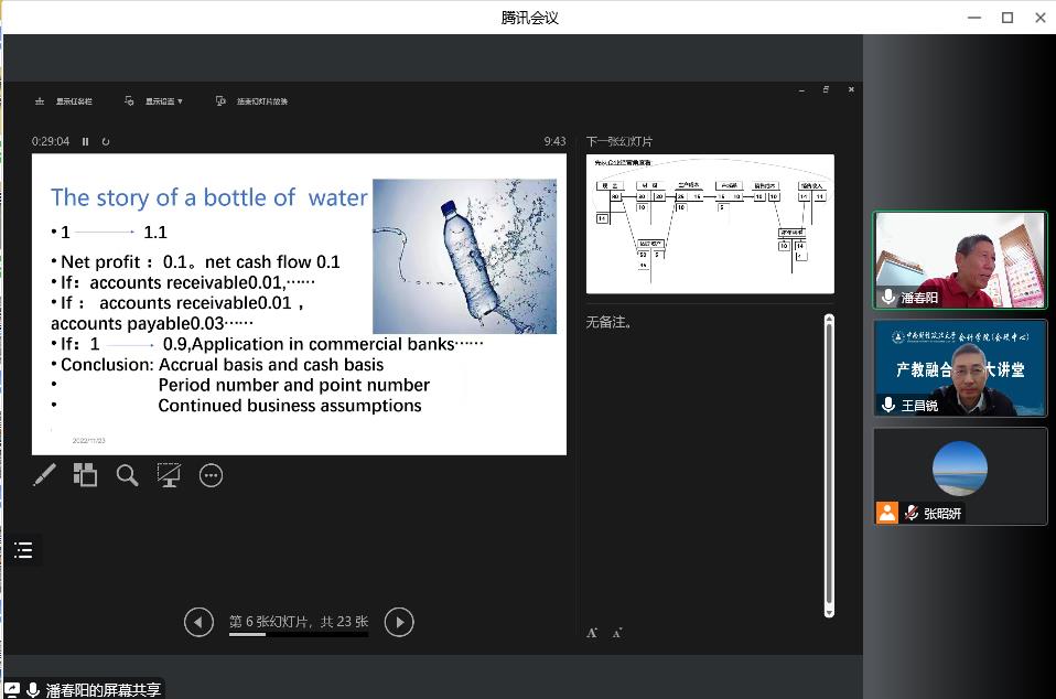 潘老师从企业实务角度对现金流问题进行了深度剖析,增强了同学们对企业现金管理的认识与理解。潘老师用通俗易懂的语言、鲜活的案例向同学们讲述了企业净利润与现金净流量之间的关系,企业经营者角度和投资角度的现金净流量差异,企业经营活动现金净流量的内涵和计算,并对实务工作中项目投资现金净流量的认知错误进行了纠偏。潘老师还以房地产项目投资为例,结合开发商、承包商、企业员工和政府之间的关系,对现金流管理进行分析。潘老师通过鲜活的案例让同学们认识到现金是企业的“血液”,实务中的现金管理问题比教材中的介绍要复杂的多,在实务中存在很多认识不到位的情况,希望引起同学们对现金流问题的重视和思考,将理论学习与实践应用结合起来。