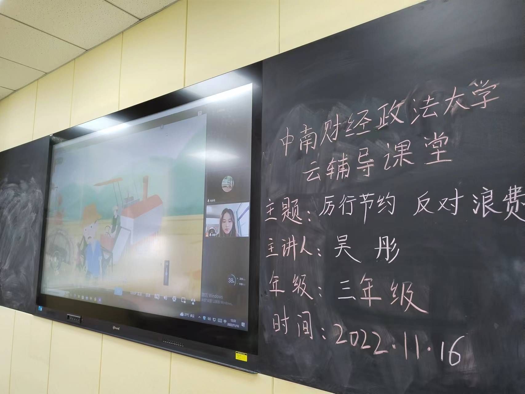 (通讯员 吴和芹)2022年11月16日下午,通过腾讯会议平台,会计学院学生党员志愿服务团成员为云南省盐津县箭坝小学三年级师生开展以“厉行节约,反对浪费”的“云课堂”教学活动,旨在帮助学生了解勤俭节约的概念,培养学生勤俭节约的优良习惯。此次课程由志愿者吴彤主讲,箭坝小学校长李勇、三年级班主任罗华老师及三年级全体学生参加了本次活动。