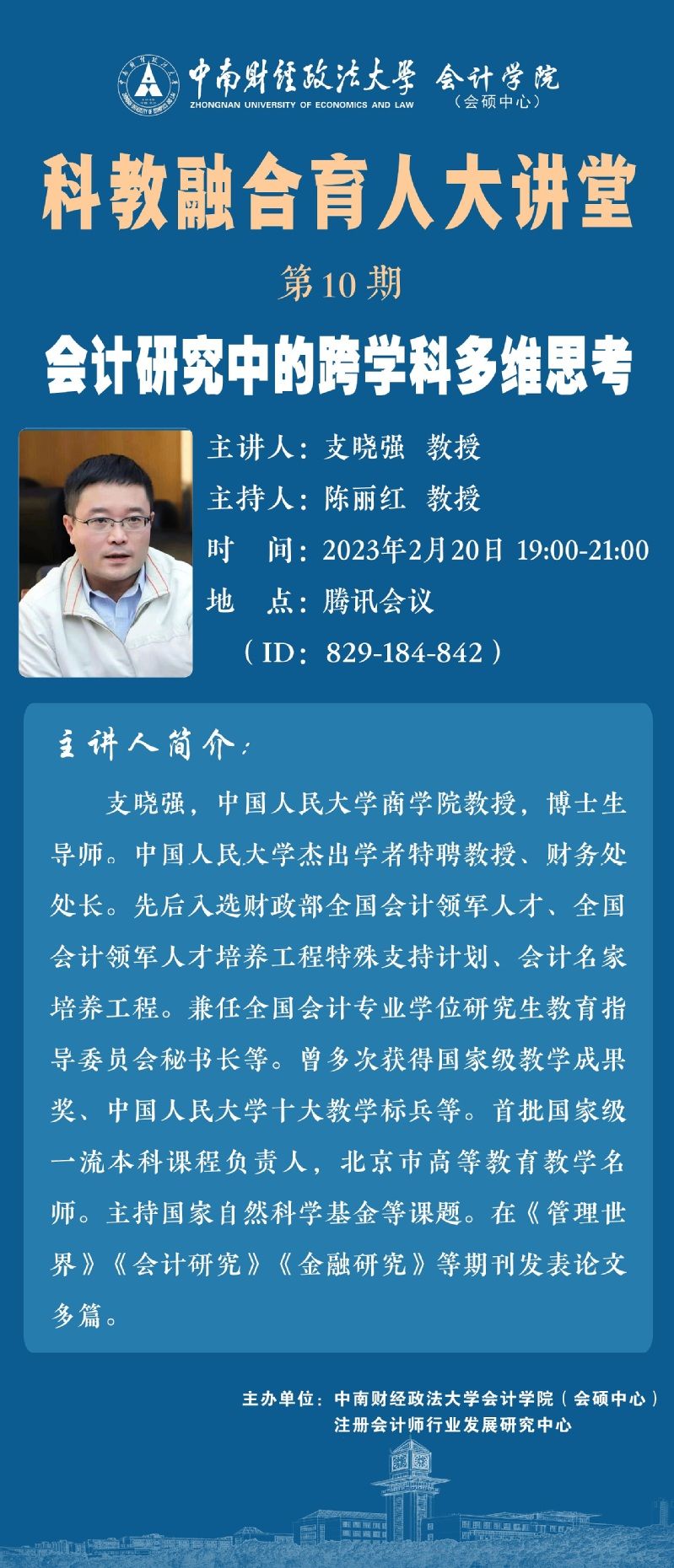 本次我们诚挚邀请中国人民大学商学院支晓强教授作为主讲嘉宾,为我们带来第10期科教融合育人大讲堂。