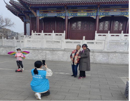 午后的冬阳为大地带来些许温暖,不少游客前往公园休闲娱乐。志愿者们也早早来到了紫阳公园,换上服装,领取工具,有序听从活动负责人的任务安排。下午2点,各位志愿者有条不紊地开始了自己的工作。有的俯下身子,捡拾着路边、花坛中的垃圾;有的有序引导游客文明游览,耐心为游客答疑解惑;有的则举起相机,不厌其烦地帮助游客拍下一张张美丽的照片,定格下美好的回忆……每一位志愿者都一丝不苟地完成自己的工作,尽心尽责的态度也收获了游客的赞赏,青春洋溢的面庞与忙碌的蓝色身影构成公园中一道靓丽的风景。