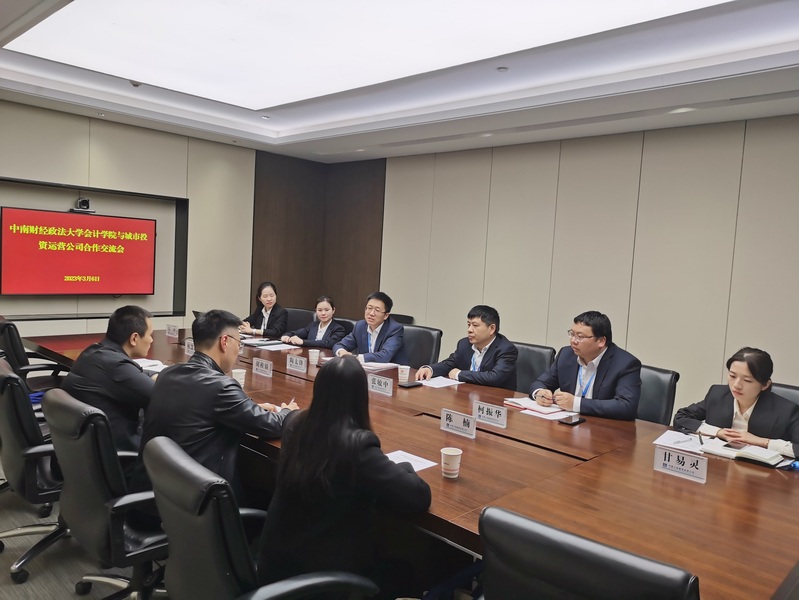 中建三局城市投资运营有限公司党委委员、总会计师张敏中,中建三局争先学院常务副院长兼城市投资运营有限公司人力资源部经理陶太锋,中建三局城市投资运营有限公司财务金融部经理柯振华、资金管理中心主任裴琳、人力资源部经理助理甘易玲、城市运营部财务副总监刘玲等参与座谈。双方就进一步开展实习就业、高端培训、课题研究等多方面合作进行了深入交流。