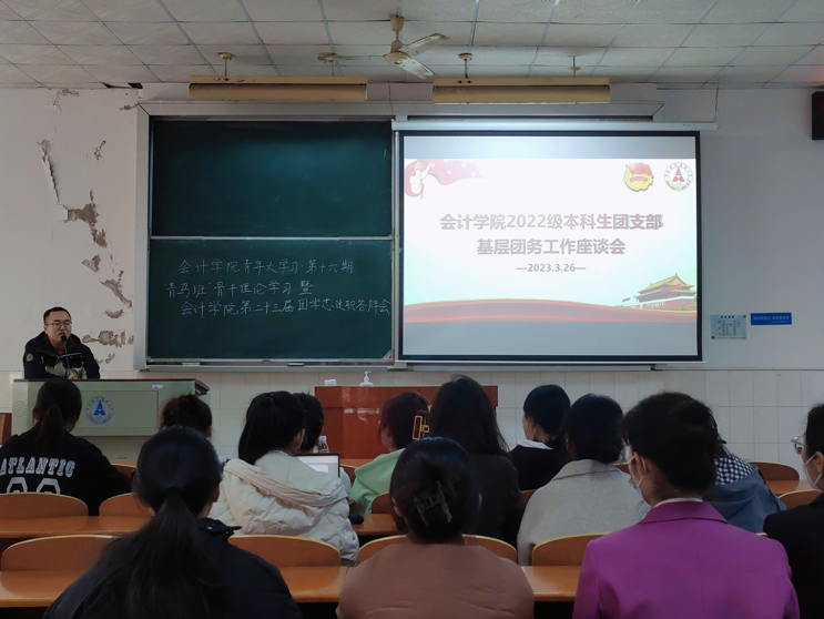 (通讯员 赵达骋 学生记者 许铭凌)3月26日中午,会计学院于首义校区文瀚楼302教室召开2022级本科生团支部基层团务工作座谈会,会计学院团委书记赵达骋,本科2022级辅导员黎玥、分团委组织部代表出席会议。