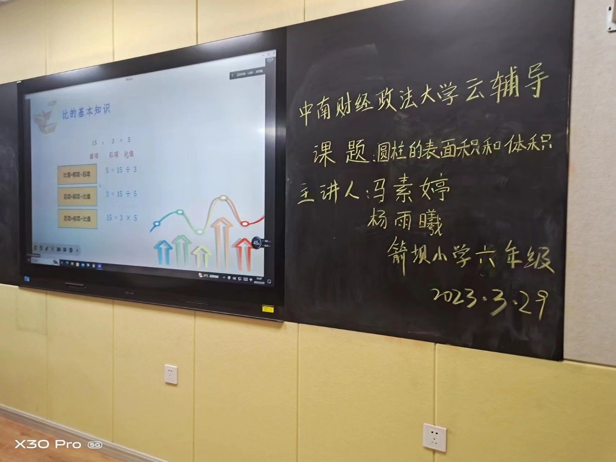 (通讯员 陈怡阳)2023年3月29日下午,通过线上腾讯会议形式,会计学院学生党员志愿服务团成员为云南省盐津县箭坝小学六年级师生开展了以“比和比例”为主题的数学课堂教学,旨在为学生们巩固数学基础,提高学生学习数学的兴趣。此次课程由志愿者马素婷,杨雨曦两位同志主讲,盐津县箭坝小学六年级全体师生参与本次了活动。