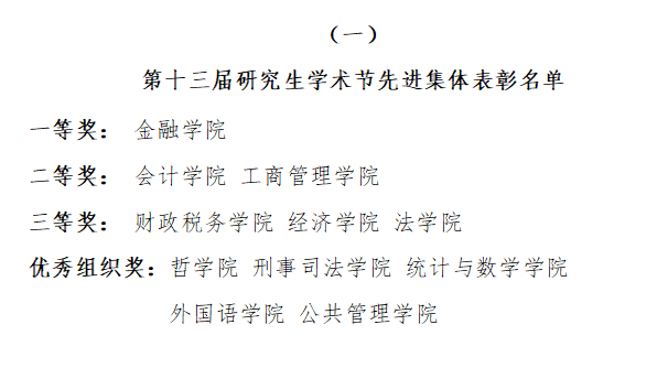 2022年11月至2023年5月,为深入学习贯彻习近平新时代中国特色社会主义思想和党的二十大精神,进一步落实习近平总书记关于学风建设和弘扬科学家精神、创新人才培养等工作的重要指示批示,学校组织开展了第十三届研究生学术节。5月16日,学校发布《关于表彰第十三届研究生学术节先进集体和先进个人的决定》,会计学院凭借优异表现,在本届研究生学术节中荣获先进集体二等奖。