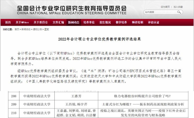 我院(中心)在教学中充分重视教学案例的开发及应用,注重提高学生的实践能力,入选案例坚持正确政治方向和社会主义核心价值观,围绕经济发展的现实和热点问题,对会计硕士专业学位教学有较高的实践指导意义,展现了我院在案例教学方面的特色。(文/杭慧喆)