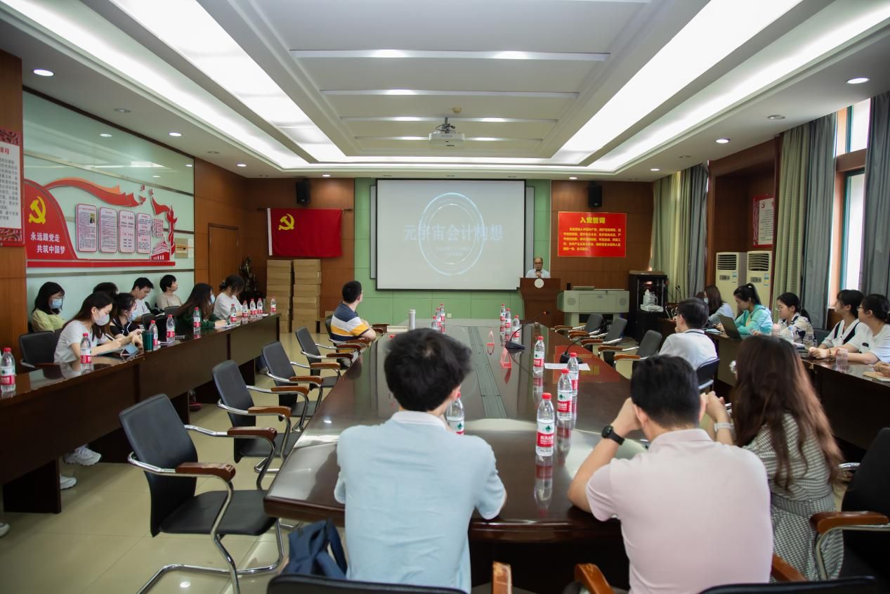 2023年6月9日下午4点,会计学院在文泉楼401会议室举办“新文科·新融合·新会计”系列讲座——元宇宙会计构想,本次讲座由南京财经大学原副校长王开田教授主讲,由会计学院副院长冉明东教授主持。