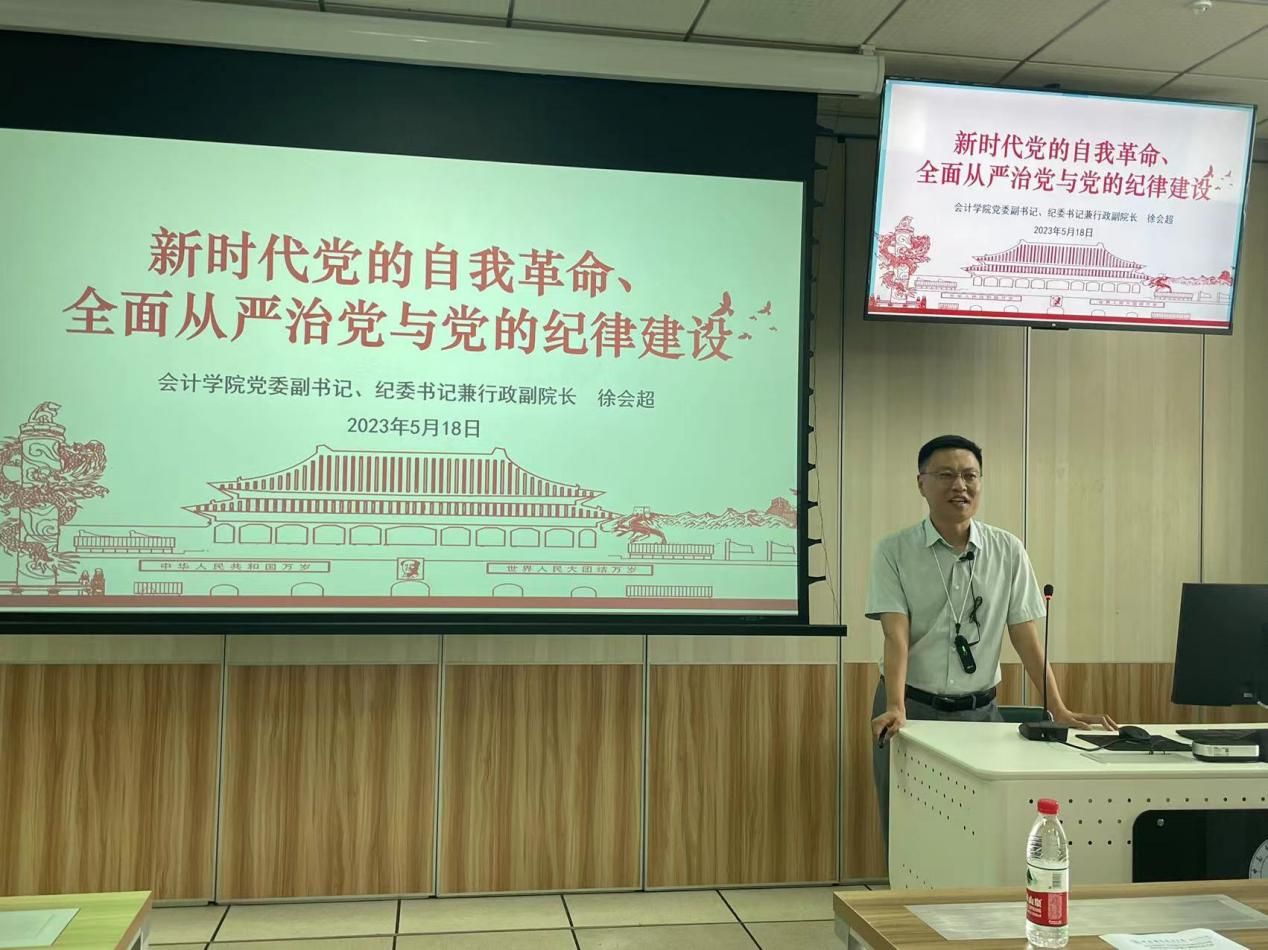 院党委副书记徐会超还主讲了专题党课《新时代党的自我革命、全面从严治党与党的纪律建设》。他从党的自我革命与新时代十年的伟大实践、全面从严治党伟大战略和党的纪律建设等三个方面开展讲解,通过相关案例分析介绍了严守党的纪律的重要性。他表示,全面从严治党是新时代党的自我革命的伟大实践,开辟了百年大党自我革命的新境界。党的纪律建设是全面从严治党和党的自我革命的关键,提供了制度保障和遵循。