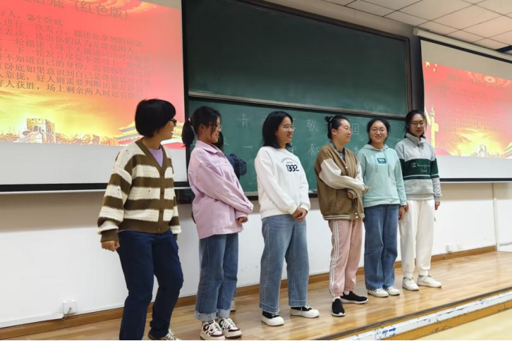 经过了前几项认真严肃的学习环节,同学们迎来了游戏“谁是卧底”。策划人陈胜楠、王嘉乐别出心裁,选取红色正能量词汇作为游戏载体,要求参与活动的同学依次描述载体、躲过大家的“侦察”。同学们玩得投入、玩得开心,也将团相关的知识牢牢记在了心里。