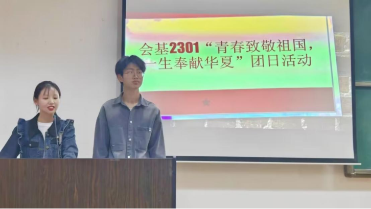 新闻网讯(学生通讯员 管智皓 明若钦 摄影 管智皓)为深入学习宣传贯彻团的十九大精神和习近平新时代中国特色社会主义思想,庆祝中华人民共和国成立74周年,会基2301团支部根据校团委相关指示,于10月19日在文润楼303教室开展“青春致敬祖国,一生奉献华夏”主题团日活动。