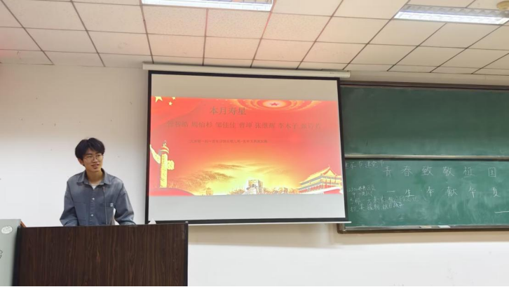 接下来是环节“我与祖国同成长”——祝福本月寿星。同学们用掌声欢迎十月过生日的团支部成员上台,为他们分发了生日小礼品,并合唱生日歌、送上生日祝福。团支部大家庭的温暖尽显其中