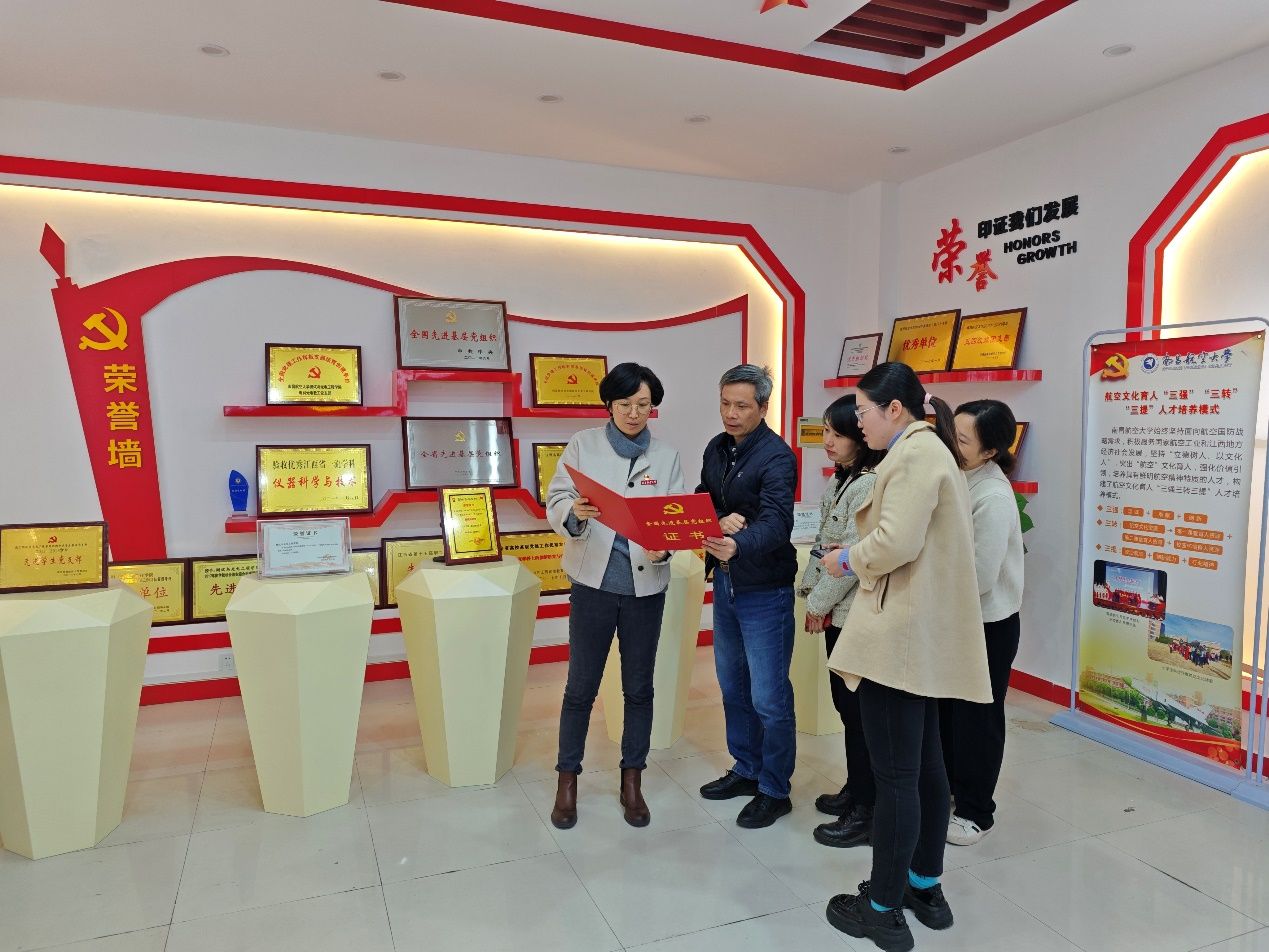 最后,周勇一行参观了南昌航空大学测试与光电工程学院党建展览馆,两院人员在展览馆合影留念。